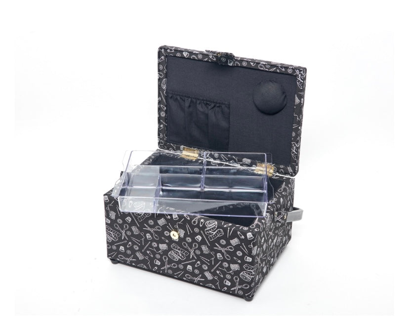 M/ plastrumdeler samt nålepude og lomme på indersiden af låget.